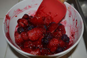 Place 1/4 cup of each of the berries in a medium saucepan. Add 3 tablespoons of water, the juice from half a small lemon, and the 2 tablespoons of sugar. Stir to combine. Cook over medium-high heat until berries have broken down and thickened. This takes about 5-7 minutes. Stir occassionally to prevent sticking/scorching. Note: If your berries aren't thickening, your heat is too low. The heat needs to be medium-high.